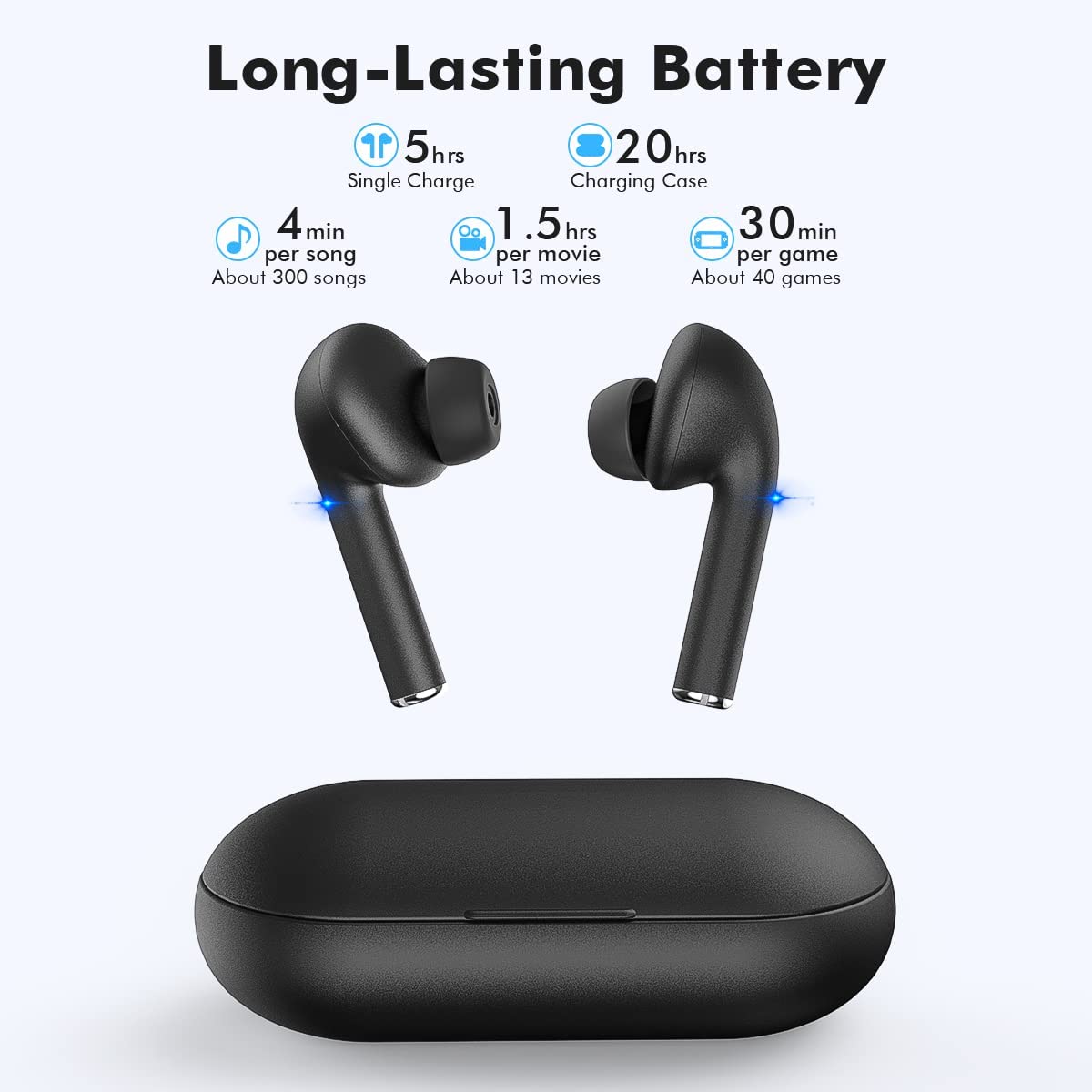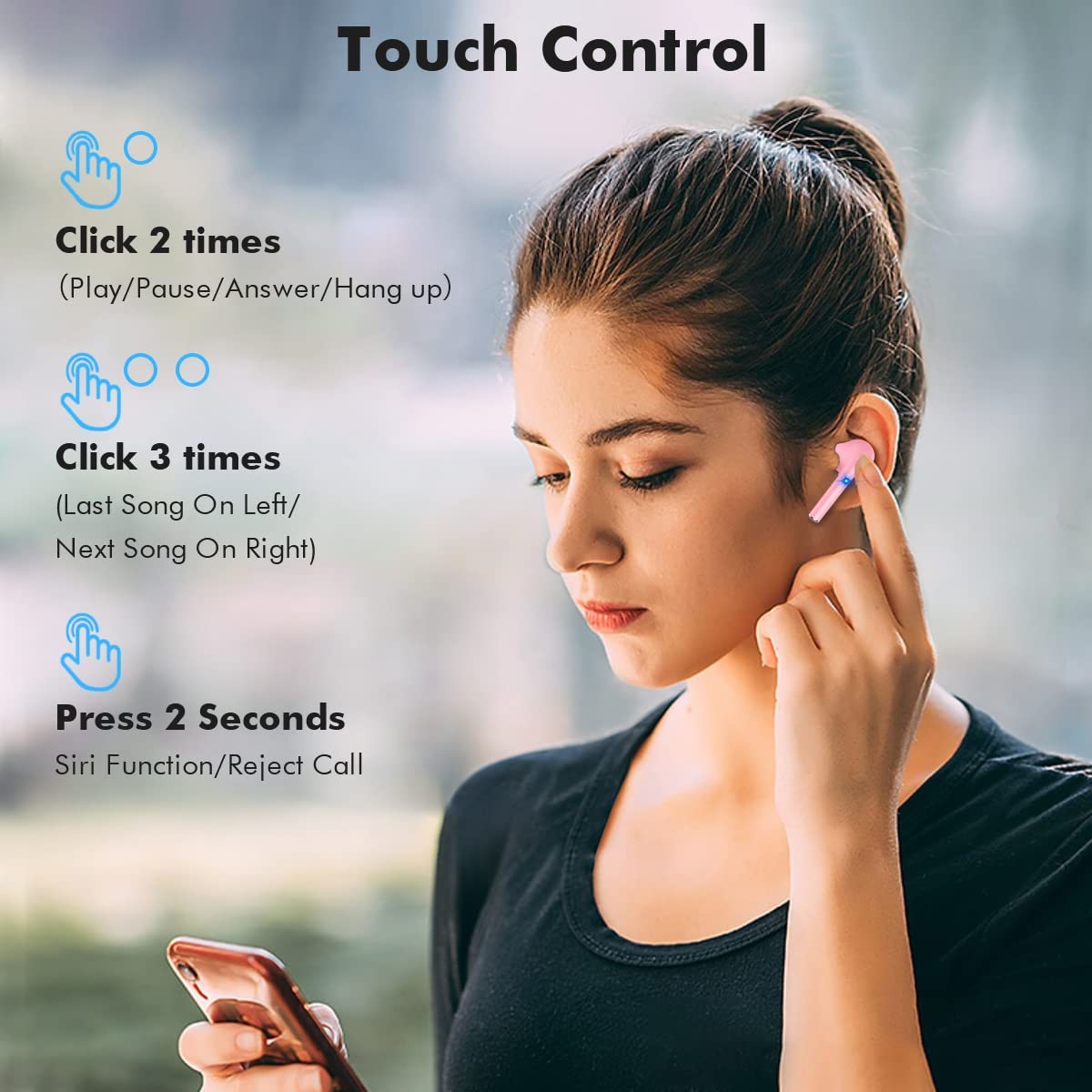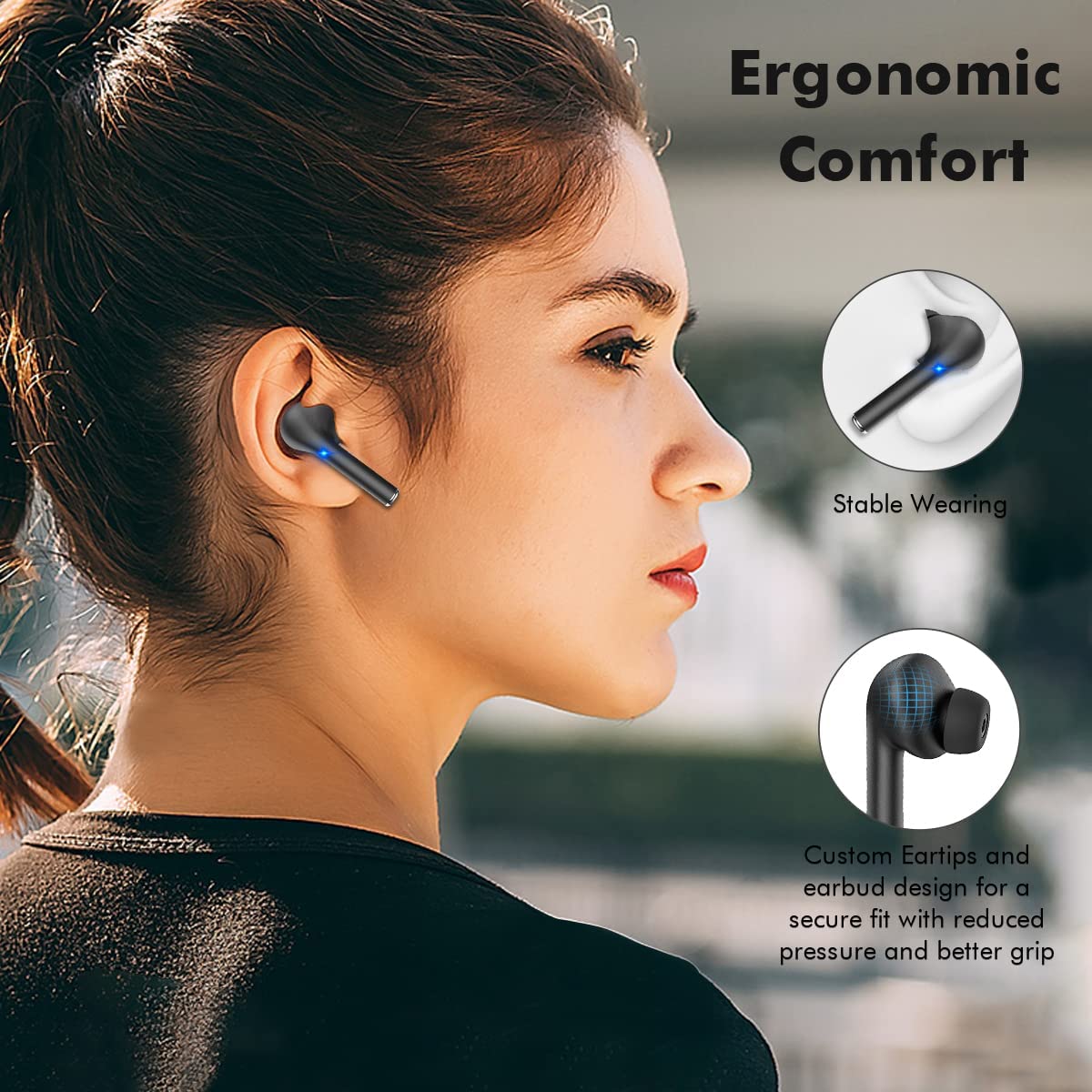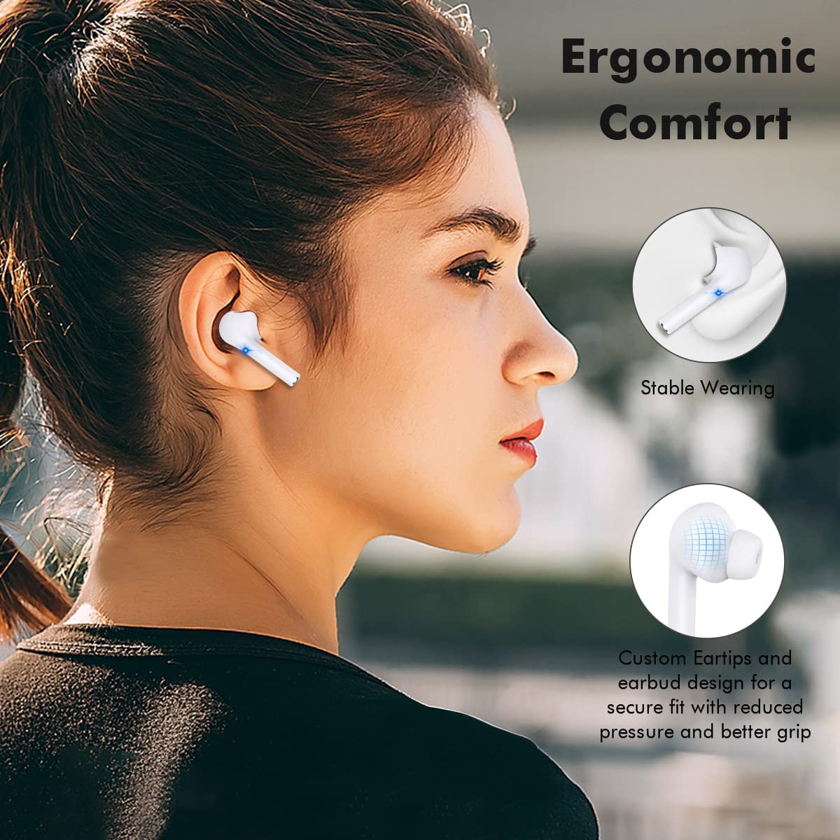 True Wireless Earbuds with Noise Cancelling, Bluetooth Headphones for iPhone Android, HD in-Ear Stereo Earphones Headset with Mic Touch Control for Sport Workout