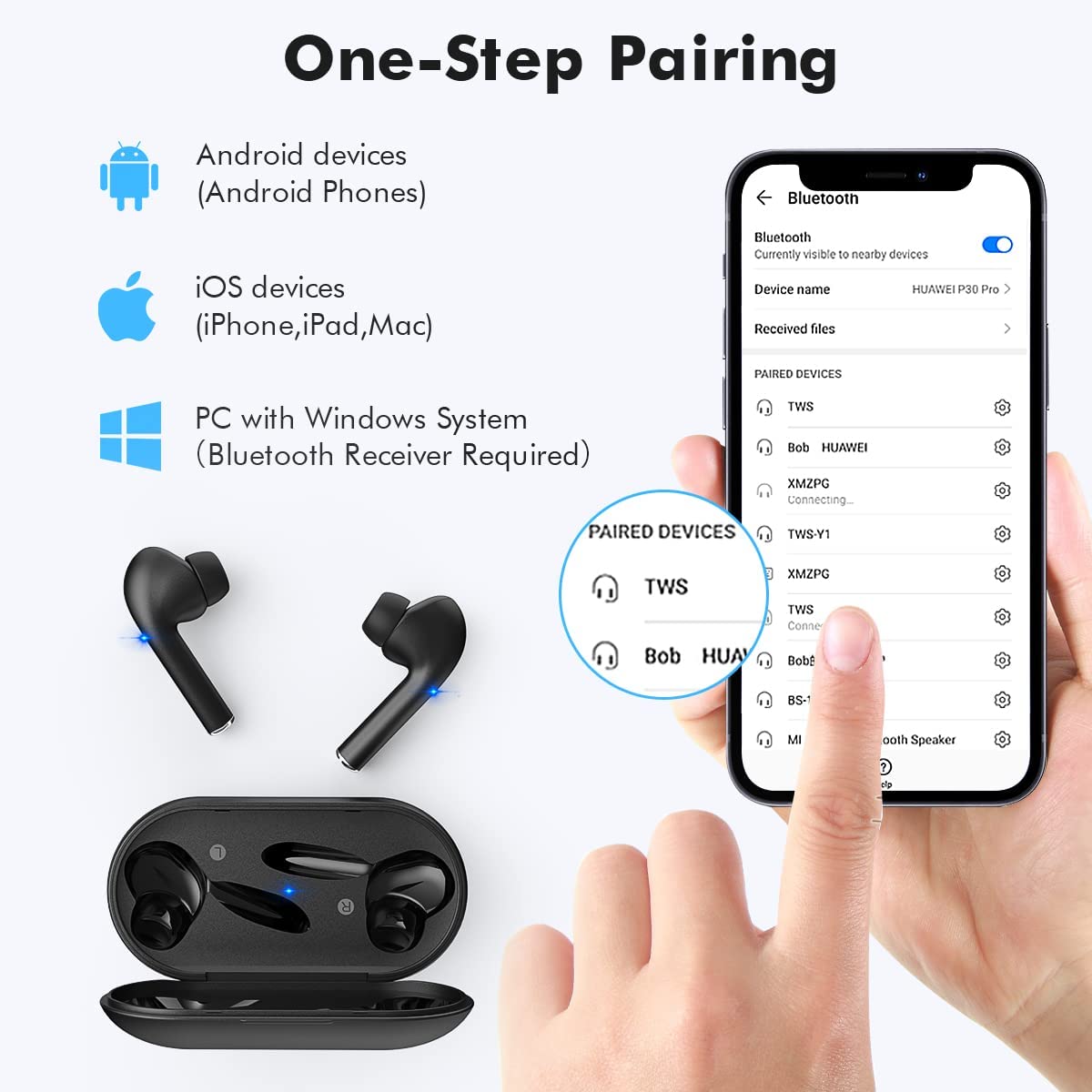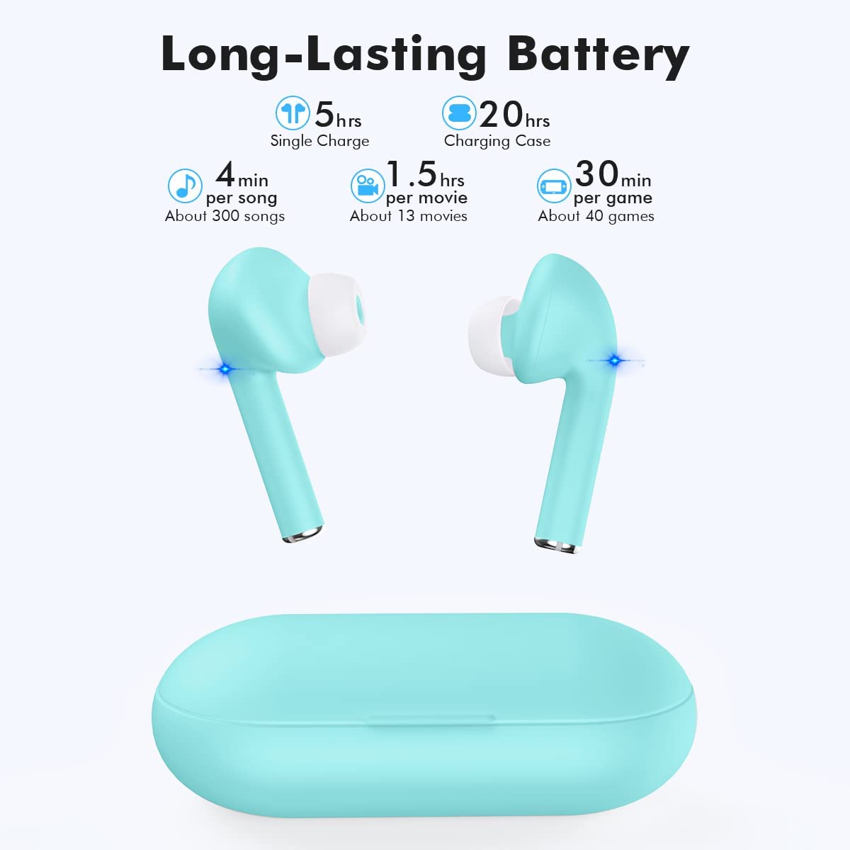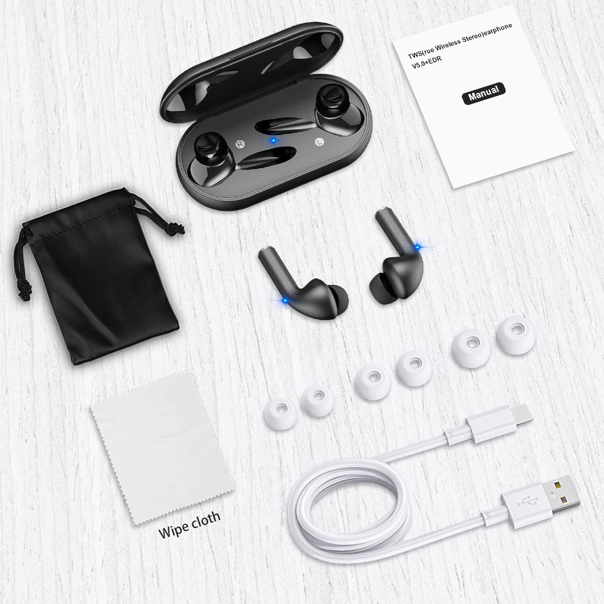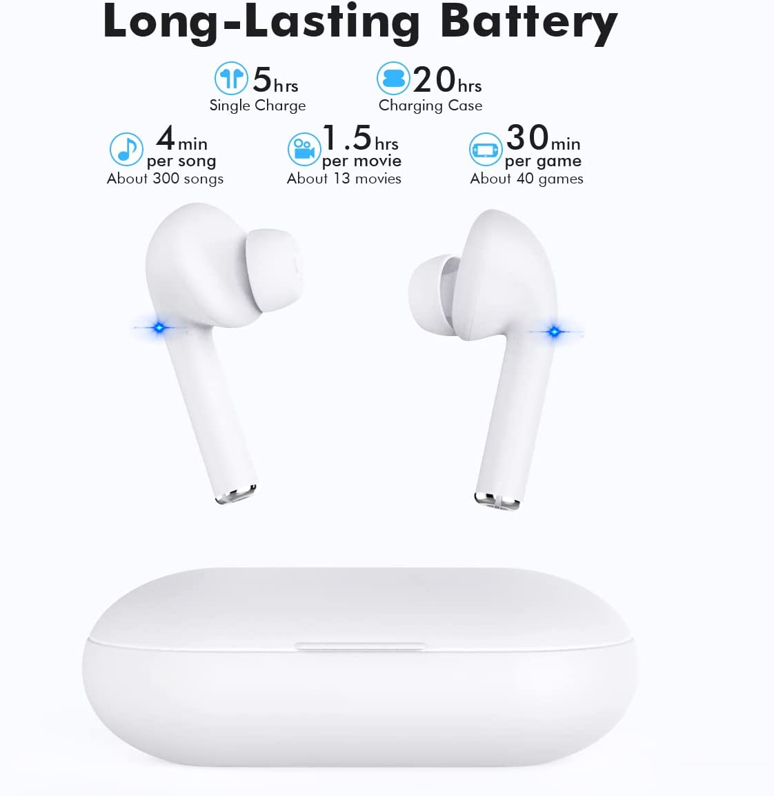 True Wireless Earbuds with Noise Cancelling, Bluetooth Headphones for iPhone Android, HD in-Ear Stereo Earphones Headset with Mic Touch Control for Sport Workout