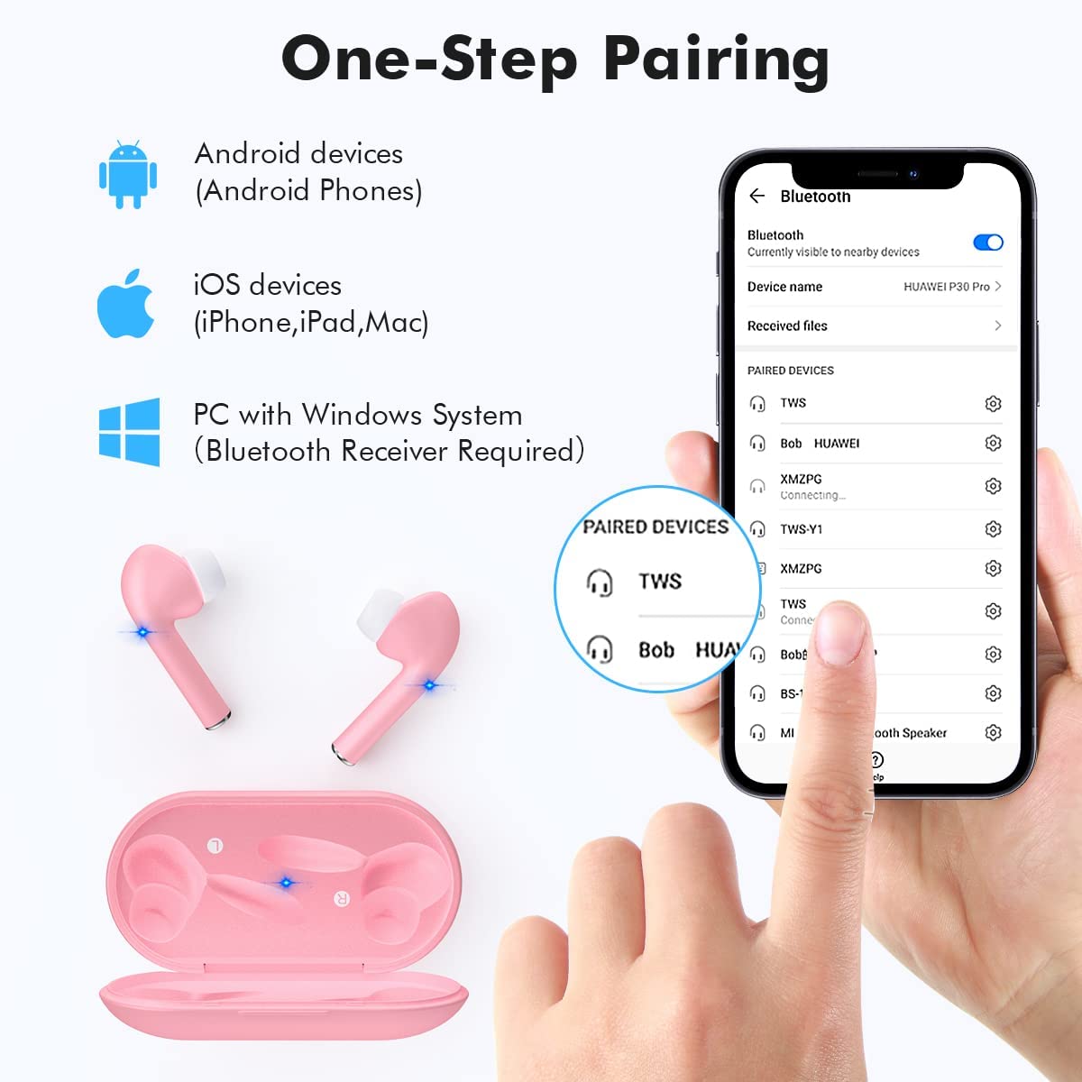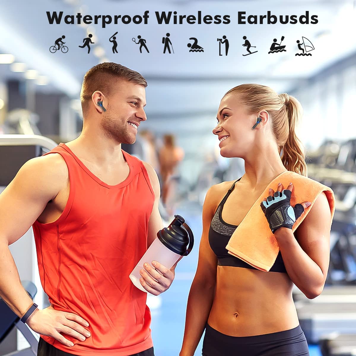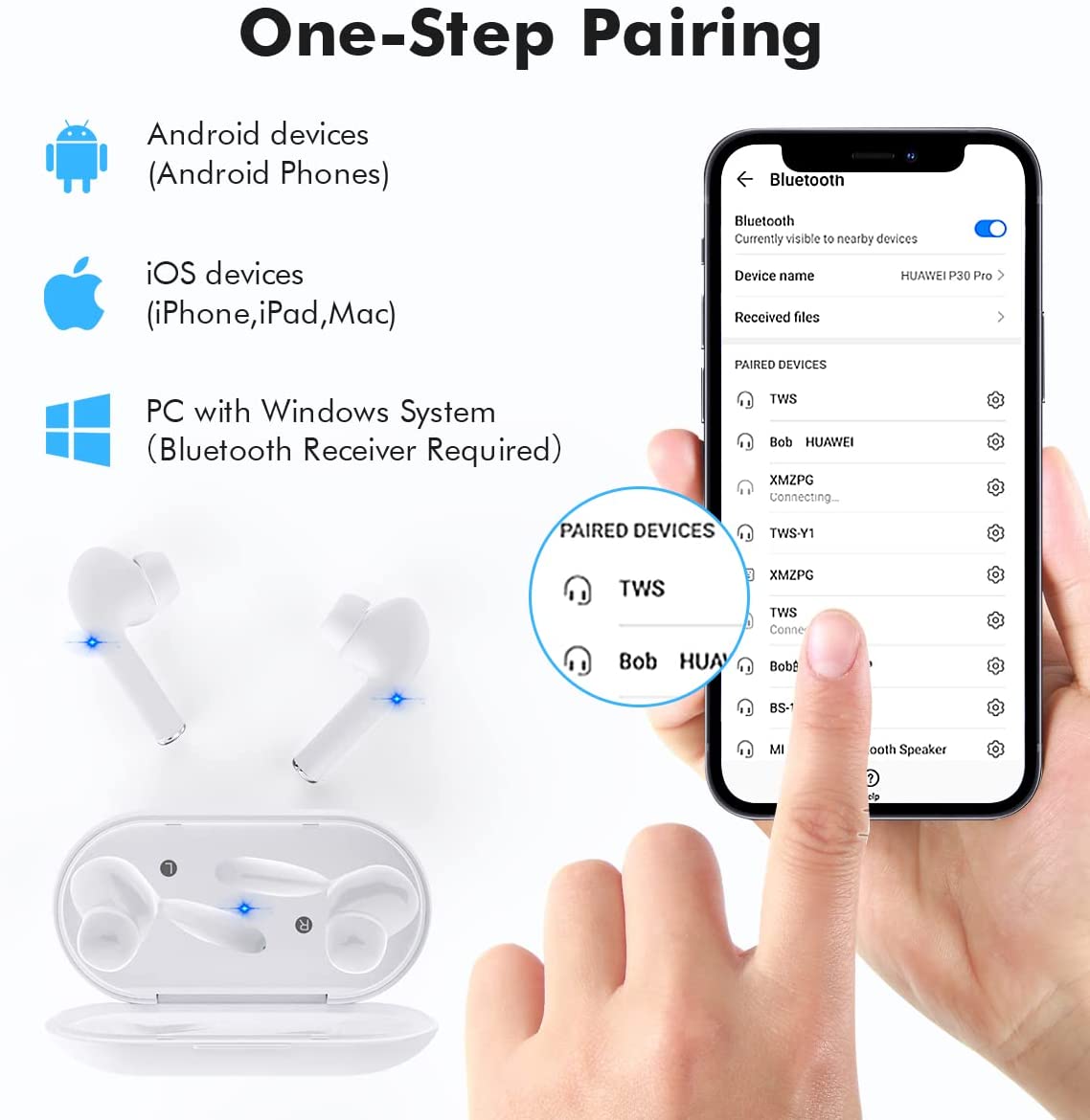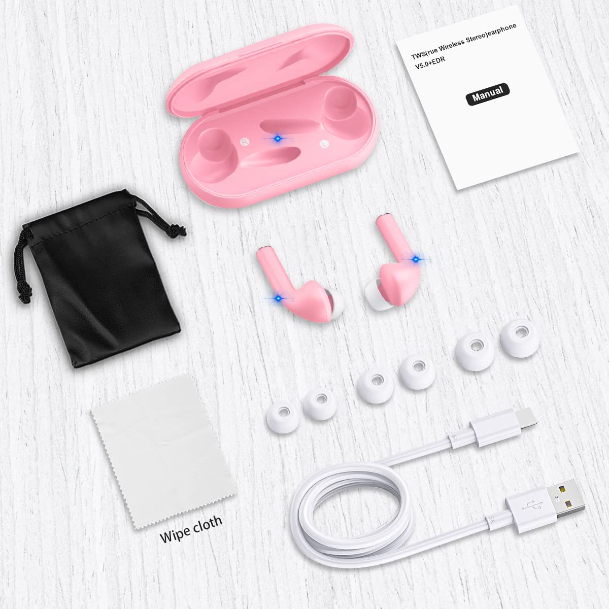 True Wireless Earbuds with Noise Cancelling, Bluetooth Headphones for iPhone Android, HD in-Ear Stereo Earphones Headset with Mic Touch Control for Sport Workout
