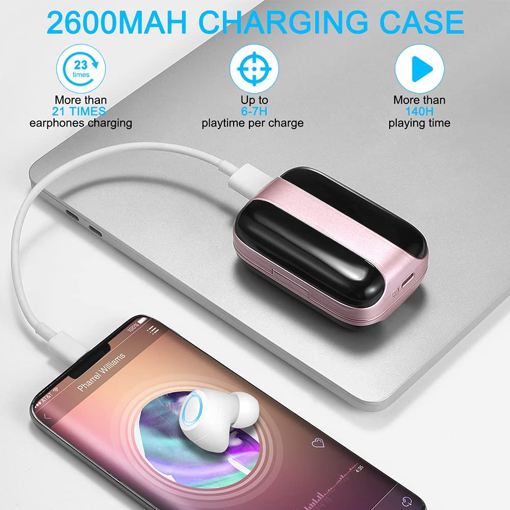 Wireless Earbuds, Bluetooth 5.1 Earbuds 140H Playtime, Bluetooth Headphones HiFi Stereo Noise Cancelling Wireless Earphones in Ear with Mic, USB-C Charging, IP7 Waterproof Headset for Sports Rose Gold