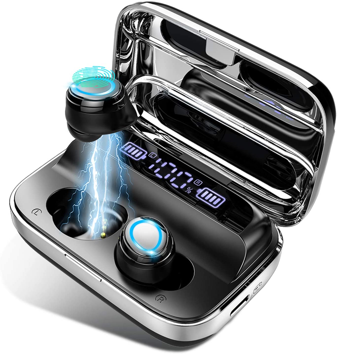Answer: 140-Hour Playing Time and 2600mAh Portable Charging Case: The wireless headphones bluetooth can play for 6hrs on a single charge, the charging case can recharge the bluetooth earphones about 23 times, provide extra 140hrs playback. With USB-C tech, it only takes 1.5hr every full charge for the case.
