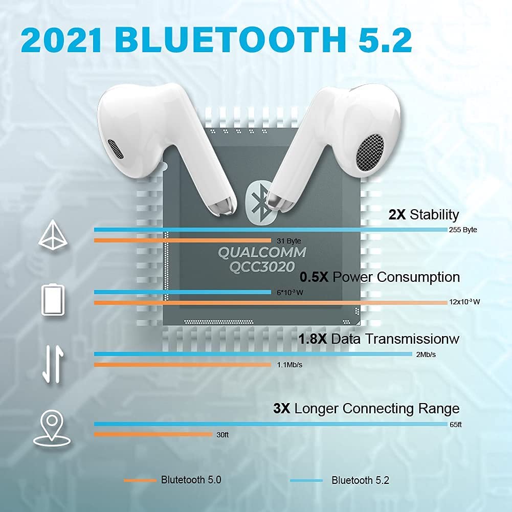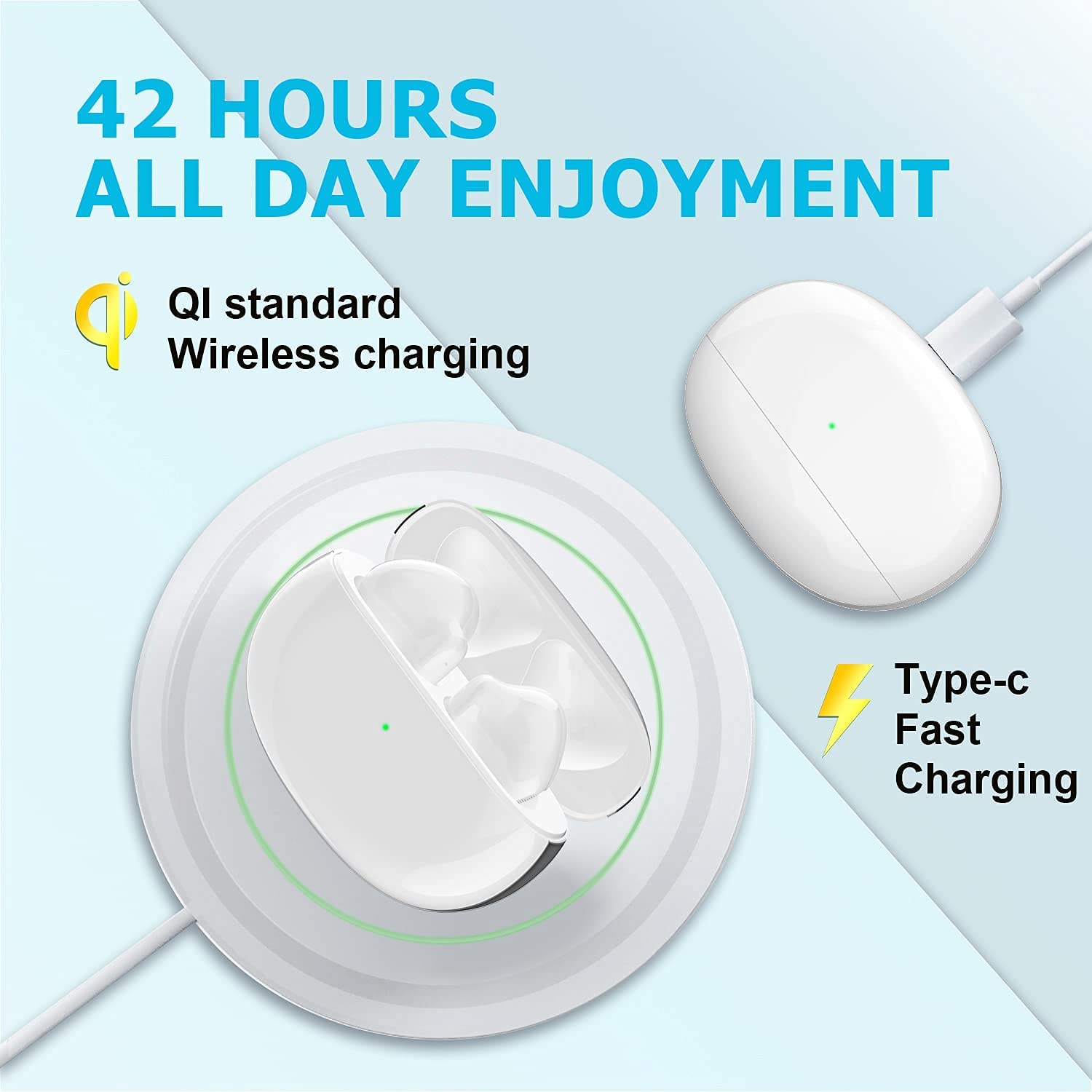 Wireless Earbuds Bluetooth 5.2 Headphones with Noise Cancelling Hi-Fi Stereo Waterproof Earphones Built in Mic Earphones with Wireless USB-C Charging 42H Playtime for iPhone/Android/Samsung
