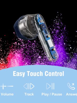 Earbuds, DOSS Retrobuds Bluetooth Headphones with Touch Control, Bluetooth 5.0, 24H Playtime, IPX5 Sweatproof, LED Displays Charging Case, in-Ear Earphones for Phone – Blue